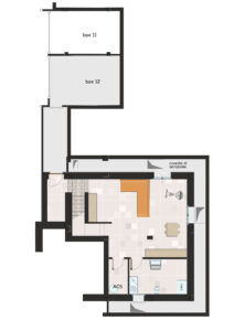 Le immagini presenti sono render e simulazioni di arredamento dell’appartamento al piano terra e della taverna.
