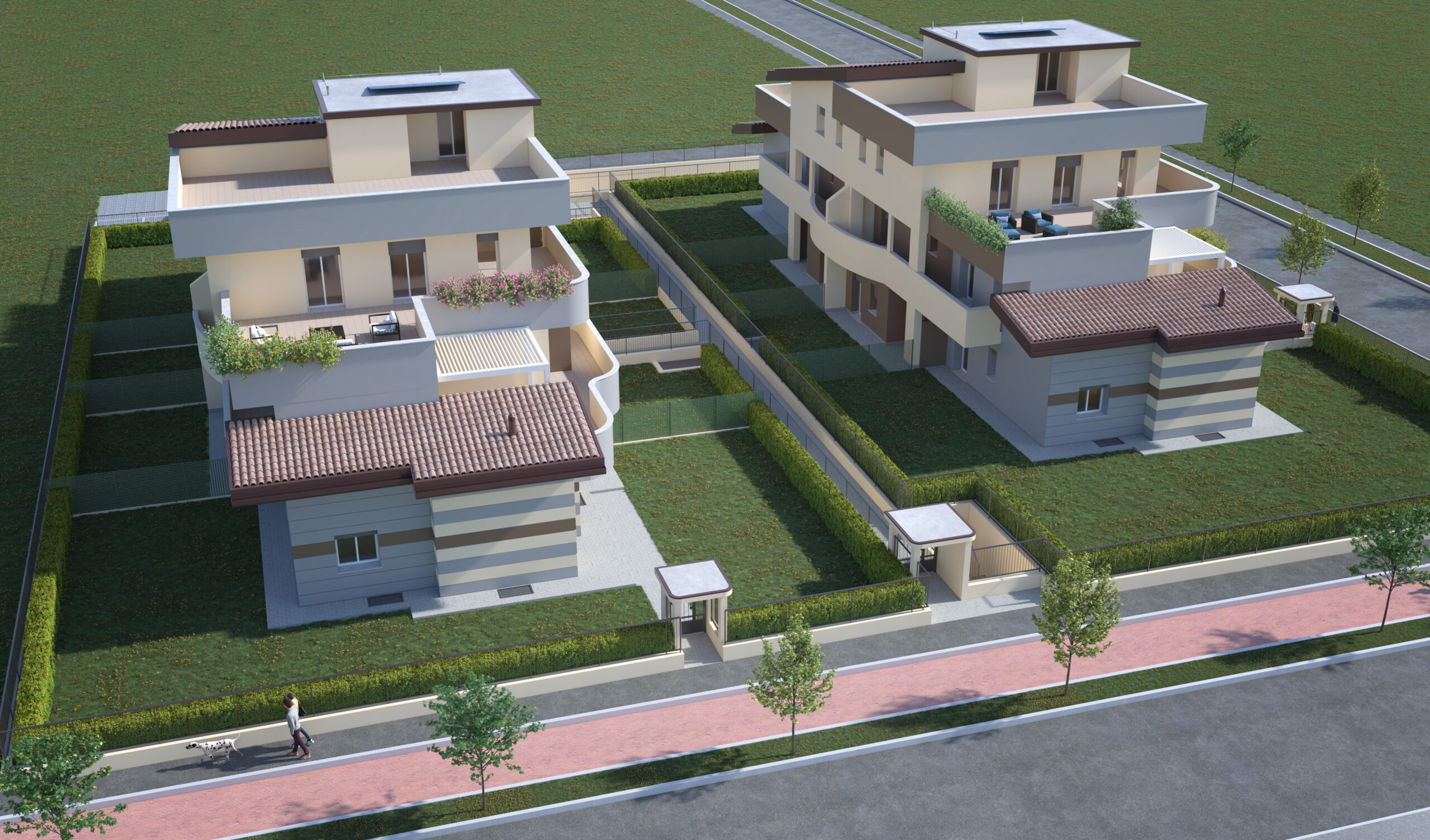 Tutte le unità al piano terra dispongono di giardini privati esclusivi, senza aree verdi condominiali.